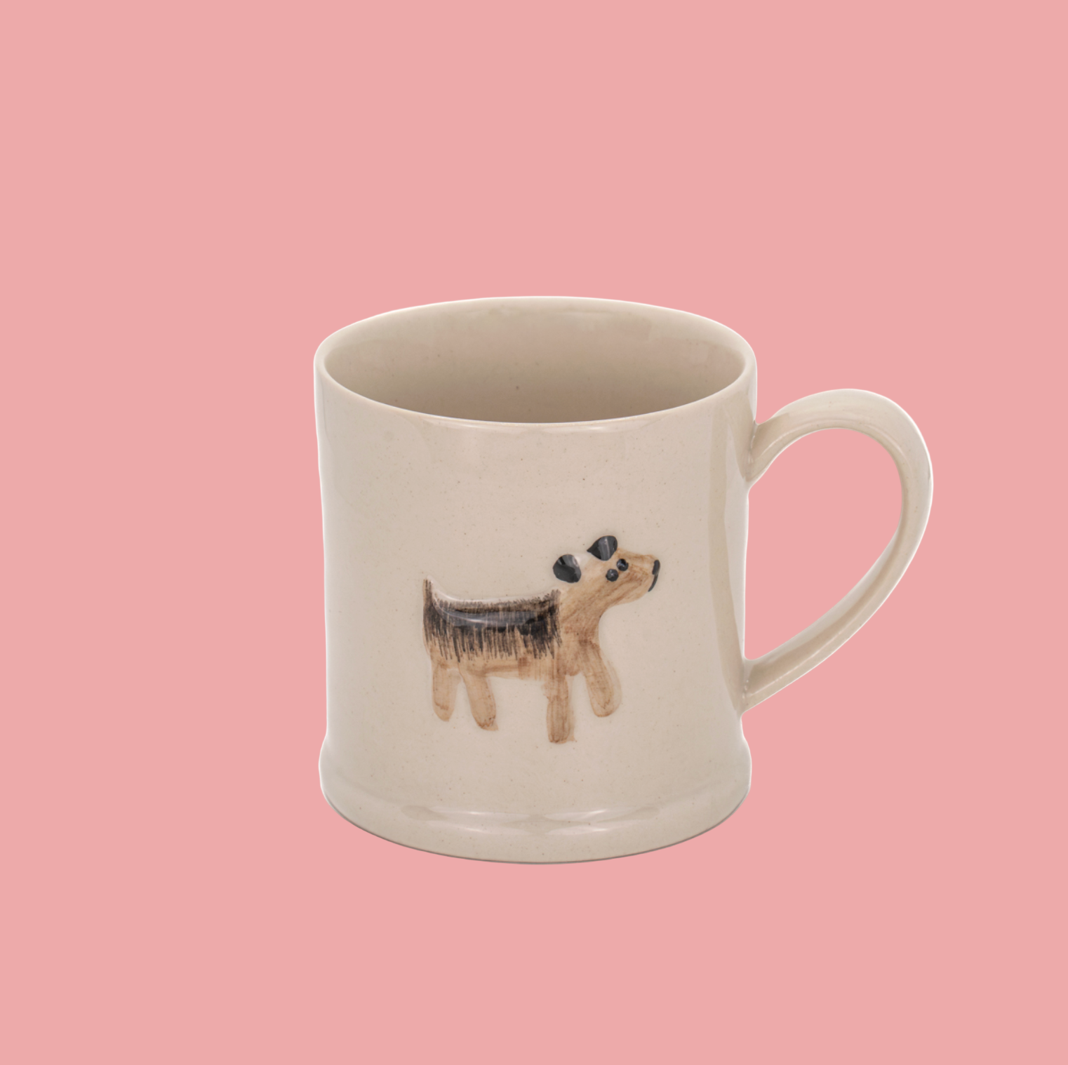 Den här rara hundmuggen i rustikt porslin för dig som vill känna som att du står i en liten stuga och tittar ut över en äng med vilda blommor!