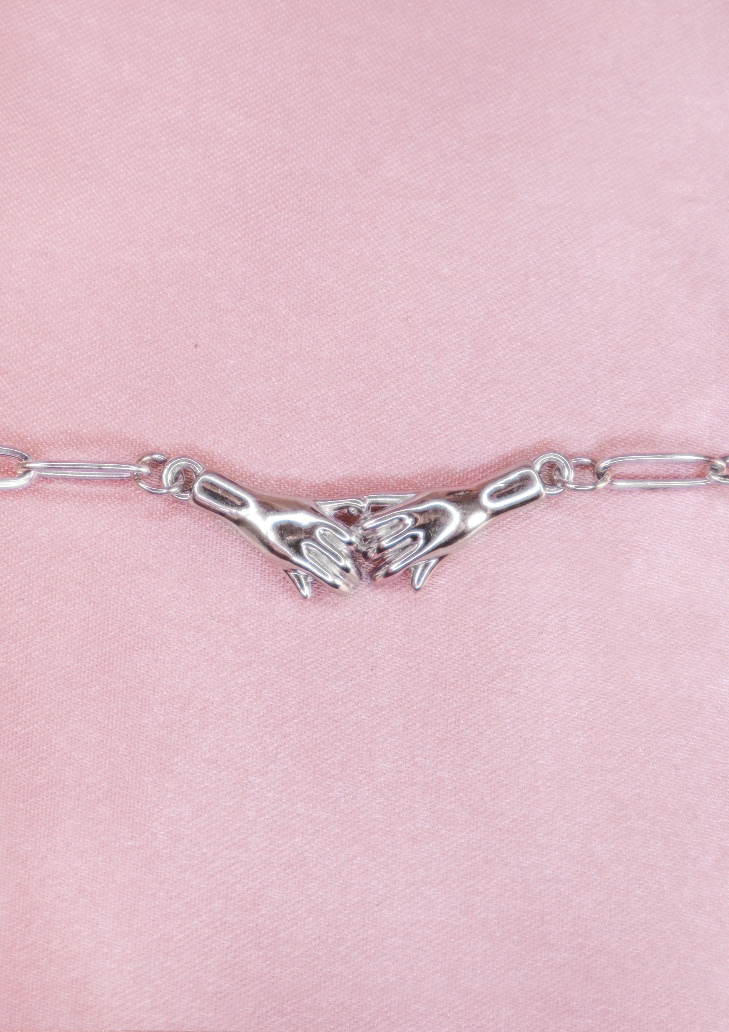 Ett fint armband med två händer som gör "pinky promis" – perfekt för dig och din bästa vän eller som en personlig påminnelse om ett viktigt budskap. En symbol för förtroende, vänskap och löften.
