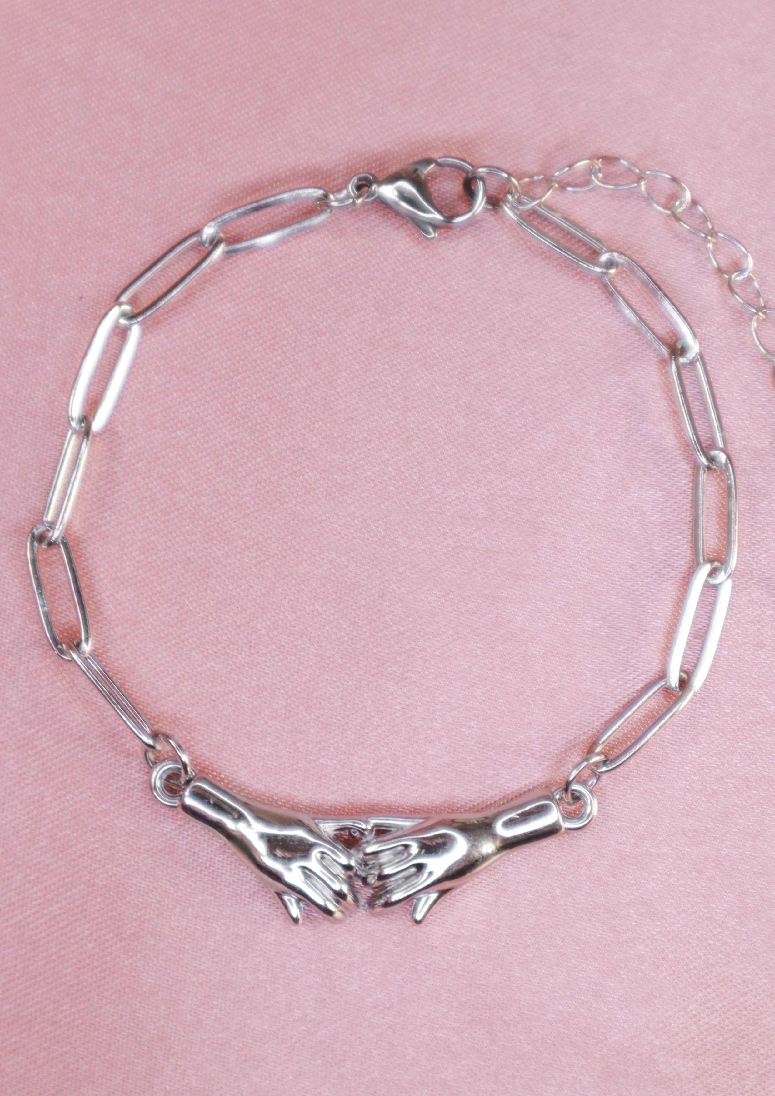 A beautiful bracelet with two hands making a "pinky promise" – perfect for you and your best friend or as a personal reminder of an important message. A symbol of trust, friendship, and promises.