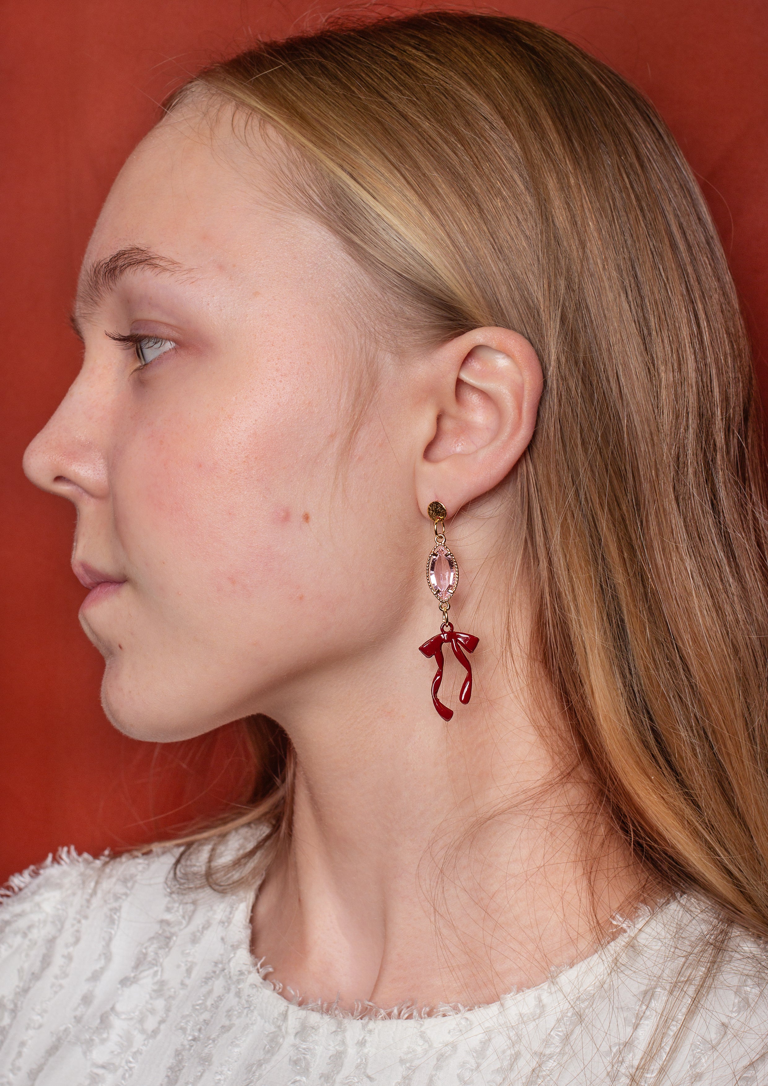 With the elegant bow and the sparkling pink glass stones that catch the light, these earrings are perfect for adding a feminine and playful touch. A small piece of jewelry with big personality, a must for anyone who loves to shine a little extra!