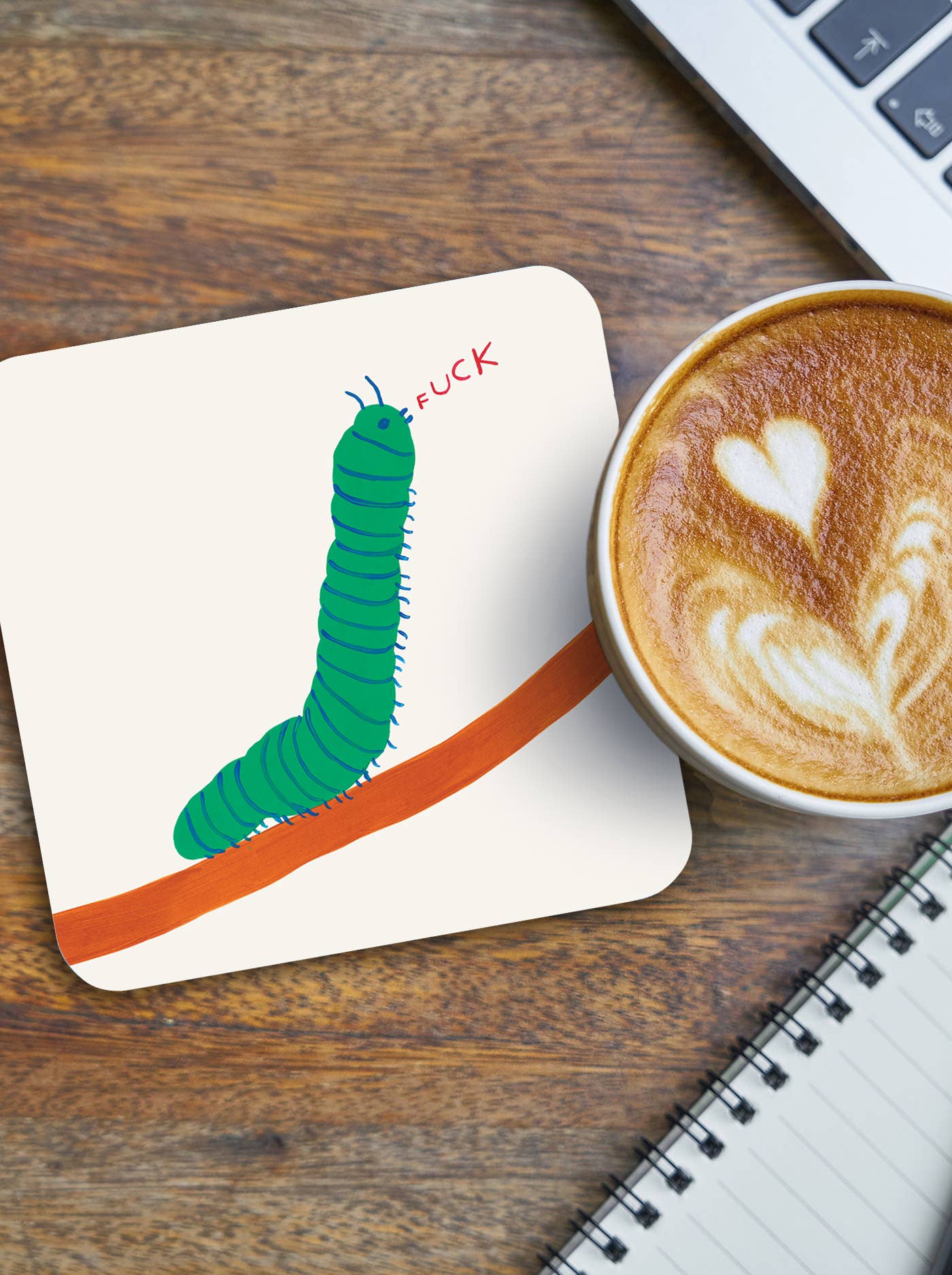 Funny Gift David Shrigley Coaster - Caterpillar Fuck